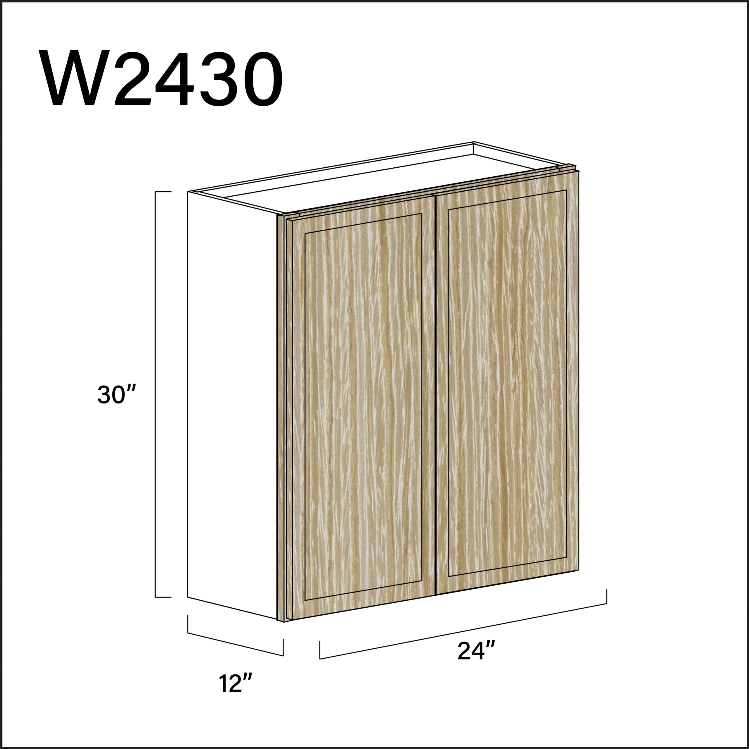Elite Oak Slim Shaker Double Door Wall Cabinet – 24″ W x 30″ H x 12″ D