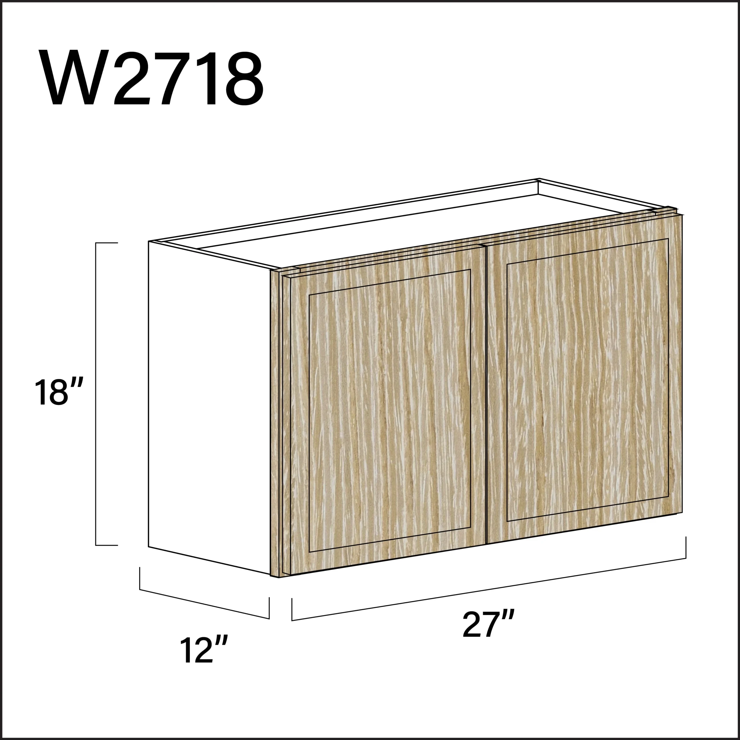 Elite Oak Slim Shaker Double Door Wall Cabinet – 27″ W x 18″ H x 12″ D