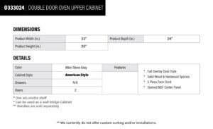 Be the first to review “Dark Taupe Shaker Double Door Oven Upper Cabinet – 33″ W x 30″ H x 24″ D” Cancel reply
