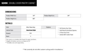 Be the first to review “Dark Taupe Shaker Double Door Pantry Cabinet – 24″ W x 90″ H x 24″ D”