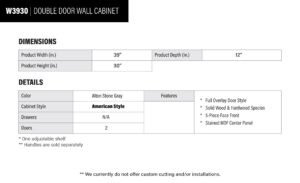 Be the first to review “Dark Taupe Shaker Double Door Wall Cabinet – 39″ W x 30″ H x 12″ D” Cancel reply