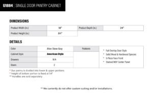 Be the first to review “Dark Taupe Shaker Single Door Pantry Cabinet – 18″ W x 84″ H x 24″ D” Cancel reply
