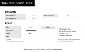 Be the first to review “Earth Grey Shaker Double Door Wall Cabinet – 33″ W x 18″ H x 12″ D” Cancel reply