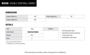 Be the first to review “Earth Grey Shaker Double Door Wall Cabinet – 33″ W x 36″ H x 12″ D”