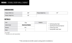 Be the first to review “Earth Grey Shaker Double Door Wall Cabinet – 36″ W x 15″ H x 12″ D”