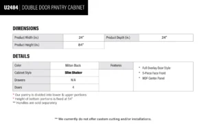 Be the first to review “Elite Black Slim Shaker Double Door Pantry Cabinet – 24″ W x 84″ H x 24″ D” Cancel reply