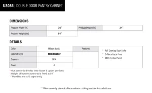Be the first to review “Elite Black Slim Shaker Double Door Pantry Cabinet – 30″ W x 84″ H x 24″ D” Cancel reply