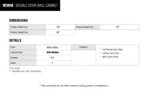 Be the first to review “Elite Black Slim Shaker Double Door Wall Cabinet – 30″ W x 18″ H x 12″ D” Cancel reply