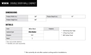 Be the first to review “Elite Black Slim Shaker Double Door Wall Cabinet – 30″ W x 36″ H x 12″ D”
