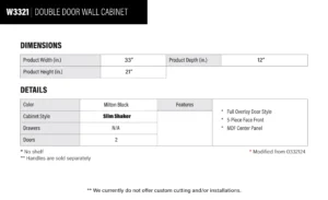 Be the first to review “Elite Black Slim Shaker Double Door Wall Cabinet – 33″ W x 21″ H x 12″ D” Cancel reply