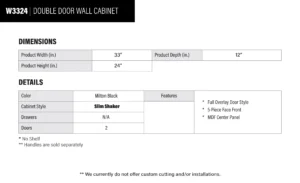Be the first to review “Elite Black Slim Shaker Double Door Wall Cabinet – 33″ W x 24″ H x 12″ D” Cancel reply