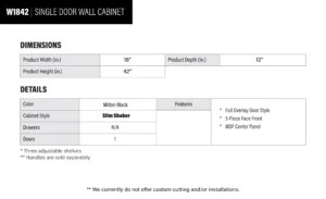 Be the first to review “Elite Black Slim Shaker Single Door Wall Cabinet – 18″ W x 42″ H x 12″ D” Cancel reply
