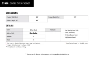 Be the first to review “Elite Black Slim Shaker Single Oven Cabinet – 33″ W x 96″ H x 24″ D” Cancel reply