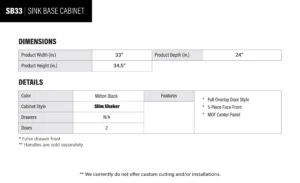 Be the first to review “Elite Black Slim Shaker Sink Base Kitchen Cabinet – 33″ W x 34.5″ H x 24″ D” Cancel reply
