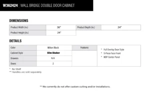 Elite Black Slim Shaker Wall Bridge Double Door Cabinet – 36″ W x 24″ H x 24″ D