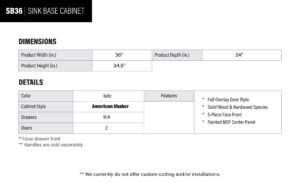 Be the first to review “Emerald Green Shaker Sink Base Kitchen Cabinet – 36″ W x 34.5″ H x 24″ D”