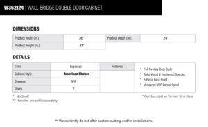 Espresso Shaker Wall Bridge Double Door Cabinet – 36″ W x 21″ H x 24″ D