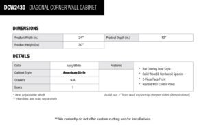 Be the first to review “Milkshake White Diagonal Wall Corner Cabinet – 24″ W x 30″ H x 12″ D” Cancel reply
