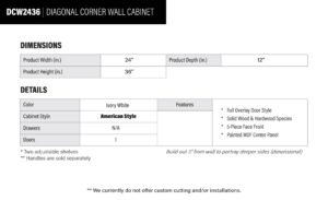 Be the first to review “Milkshake White Diagonal Wall Corner Cabinet – 24″ W x 36″ H x 12″ D”