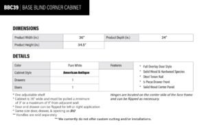 Be the first to review “Revival White Antique Base Blind Corner Cabinet – 36″ W x 34.5″ H x 24″ D” Cancel reply