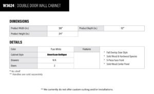 Be the first to review “Revival White Antique Double Door Wall Cabinet – 36″ W x 24″ H x 12″ D” Cancel reply
