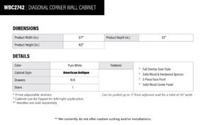 Be the first to review “Revival White Antique Wall Blind Corner Cabinet – 27″ W x 42″ H x 12″ D”