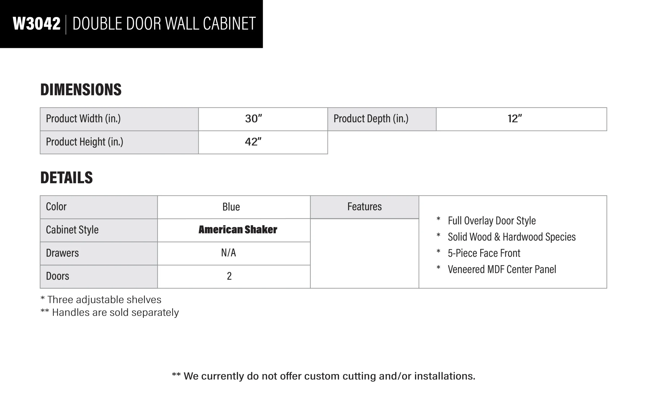 Be the first to review “Royal Blue Shaker Double Door Wall Cabinet – 30″ W x 42″ H x 12″ D”