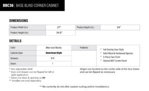 Be the first to review “Wood Brown Shaker Base Blind Corner Cabinet – 27″ W x 34.5″ H x 24″ D” Cancel reply